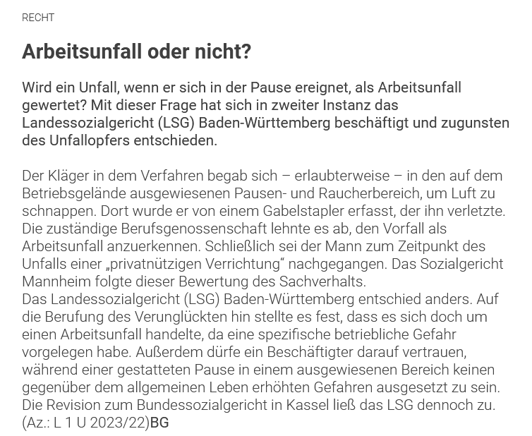 Arbeitsunfall oder nicht? - auf jeden Fall immer sofort melden: